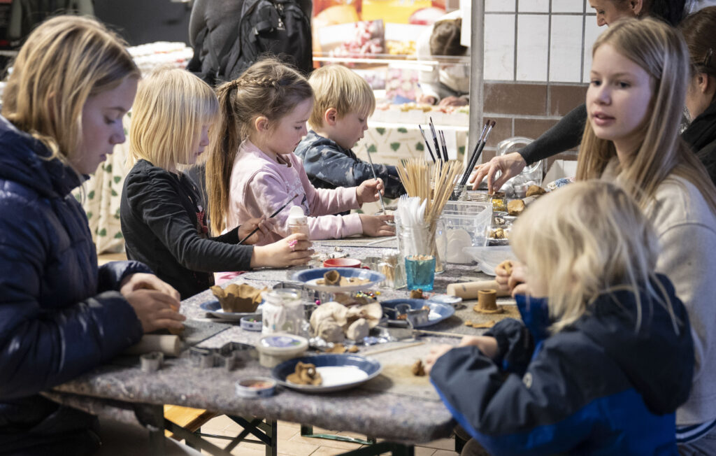 I julemarkedets rammer udviklede Sanseverden sig til en sensorisk fordybelsesstation, hvor der opstod en særlig mulighed for at glemme sig selv i processen og skabe med hænderne. Det var en stor fornøjelse at møde så mange børn og unge – og opleve, hvordan kunst og kreativitet kan være et meningsfuldt samlingspunkt.